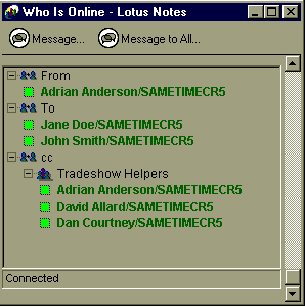 If anyone in the From, To, or cc list is logged on to Sametime Connect, or if they have the "Who is Online" window open, they will appear in the "Who is Online" window.